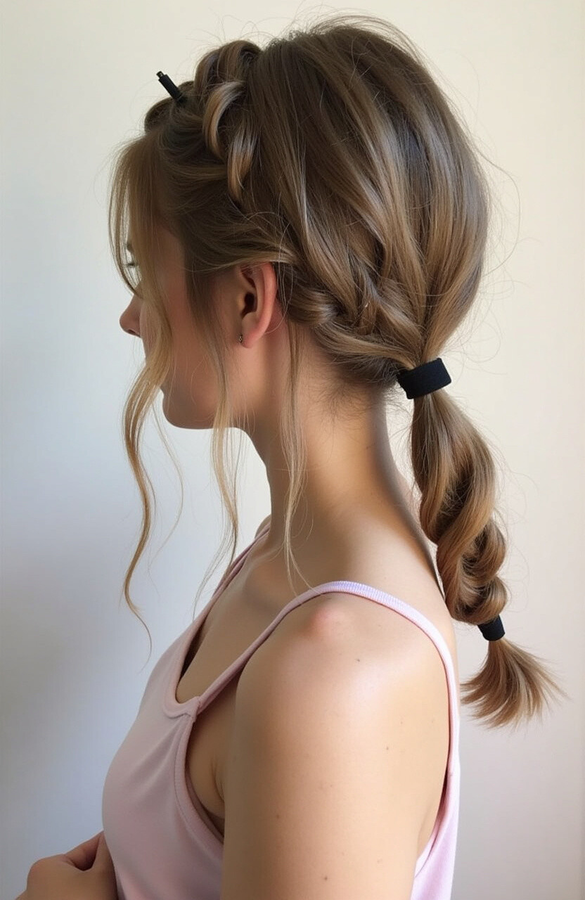 Create a side braid, then twist it into a ponytail. It’s a fun and creative way to style your hair.