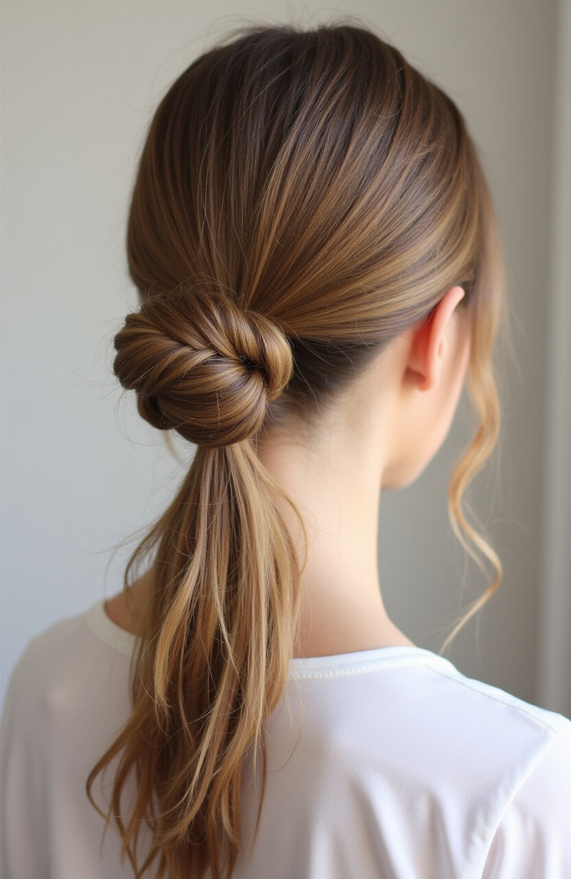 The Twisted Bun Pony is a sophisticated style that combines the elegance of a bun with the simplicity of a ponytail. It’s perfect for formal events or a polished everyday look.