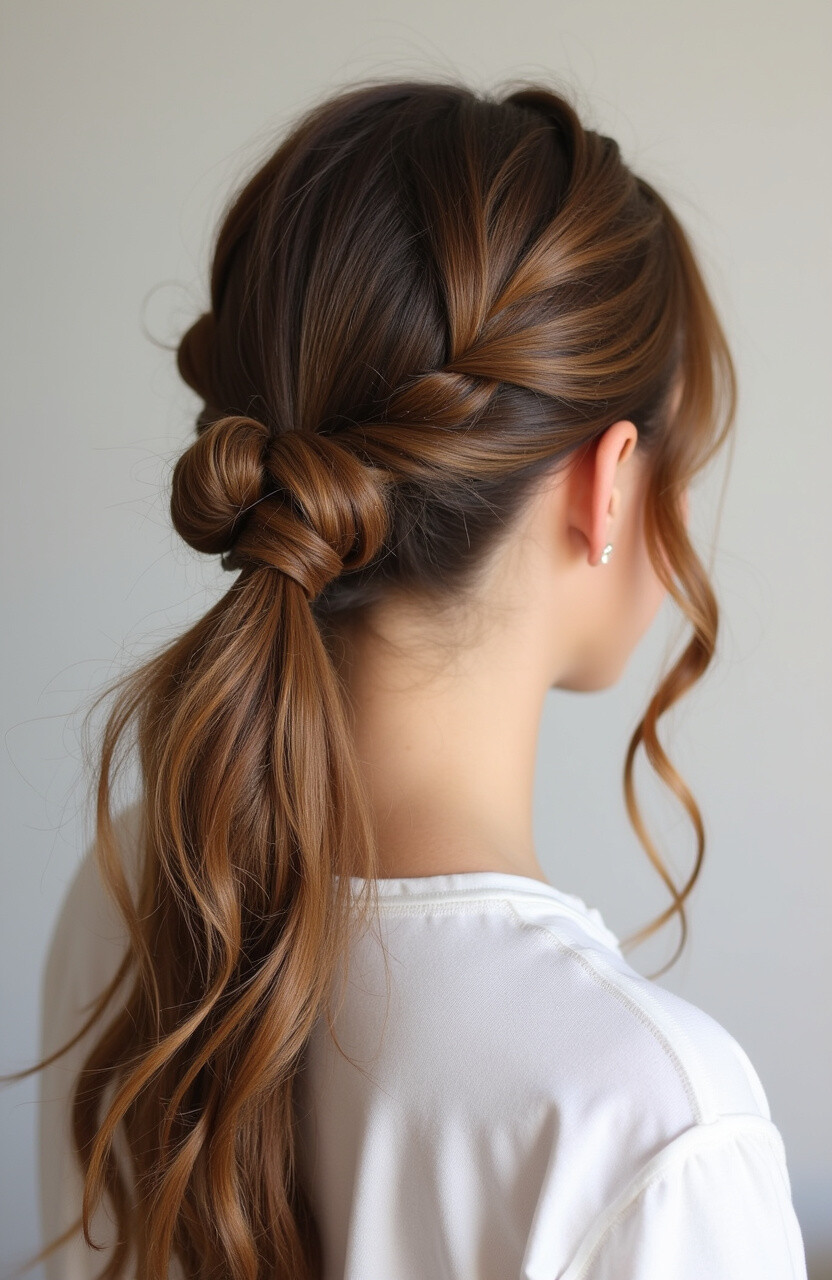 The Twisted Knot Pony adds a unique and creative flair to your hair. This style is perfect for those who love experimenting with different looks.