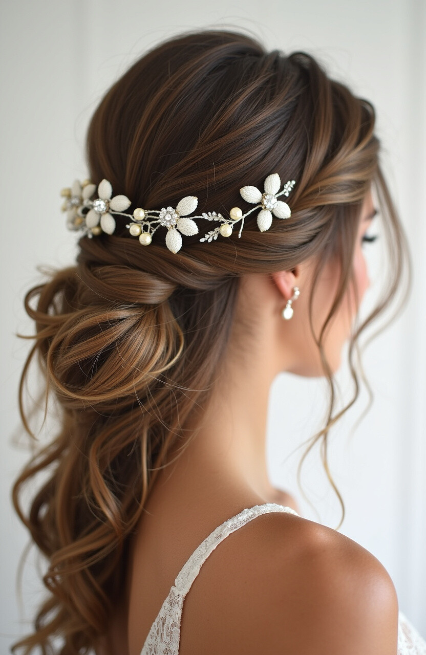 The versatility of this style is its highlight. Add a touch of sparkle with crystal pins or a floral wreath. It’s a stylish option that suits any budget.