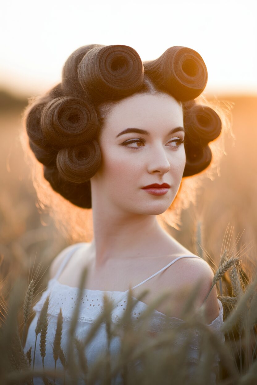 The classic double victory rolls are a staple for anyone looking to capture the essence of the 1940s. This style involves creating two symmetrical rolls on top of your head. It’s a surefire way to add a touch of vintage glamour to any outfit.