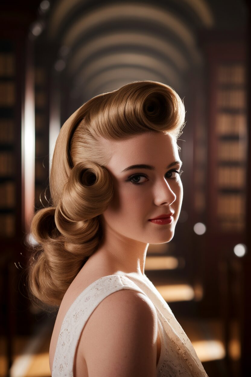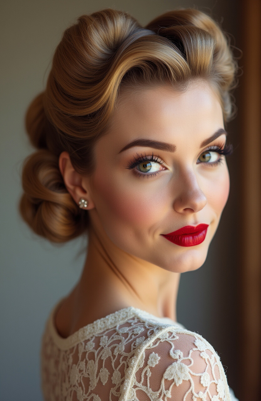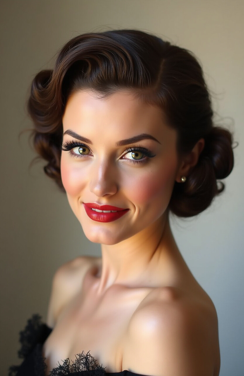 Channel your inner Hollywood starlet with vintage glam victory rolls. This style is all about drama and elegance, perfect for when you want to make a big impression. It pairs well with glamorous makeup and a stunning outfit.