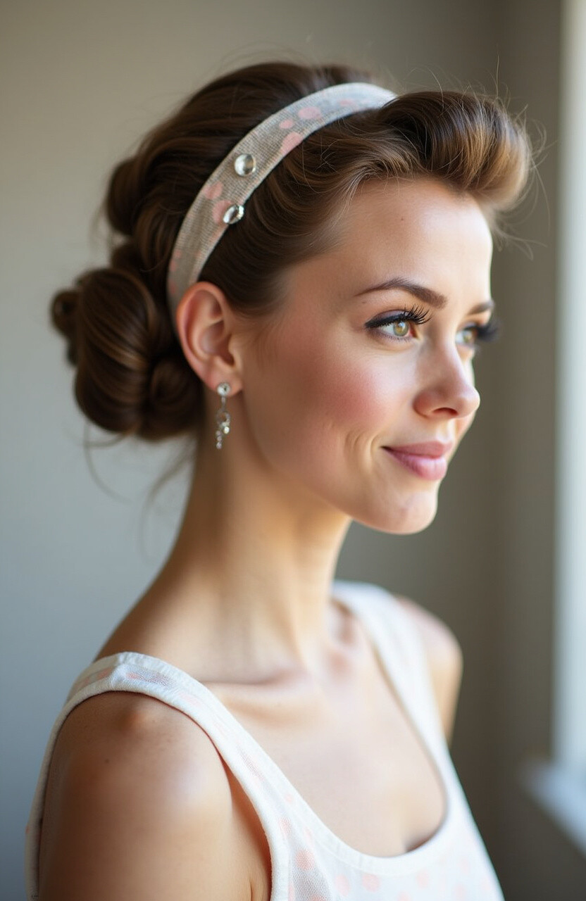 The headband provides a pop of color or texture, making the style unique. It’s perfect for casual outings or when you want to add a bit of flair to your look. Choose a headband that complements your outfit for a cohesive style.