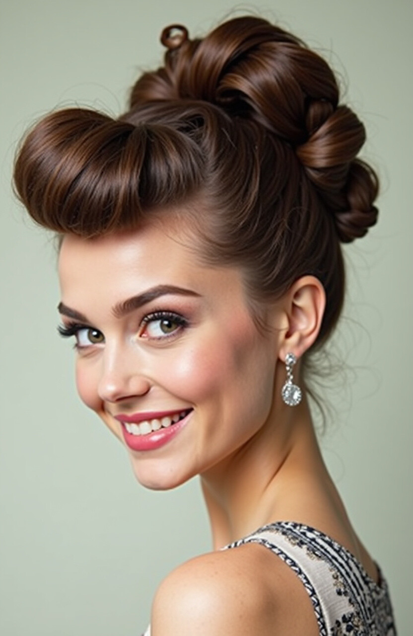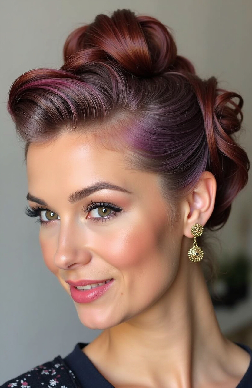 Combine the classic look of victory rolls with the practicality of a ponytail. This style is perfect for those who want an elegant updo that still feels youthful and energetic. It’s a great choice for a busy day when you still want to look put together.