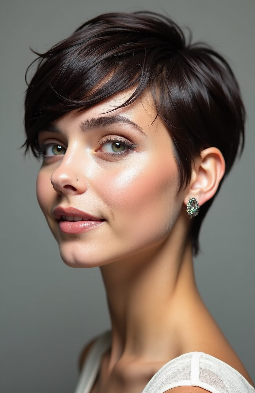 Short hair can be just as striking with the wet look pixie cut. This daring style is both playful and edgy.