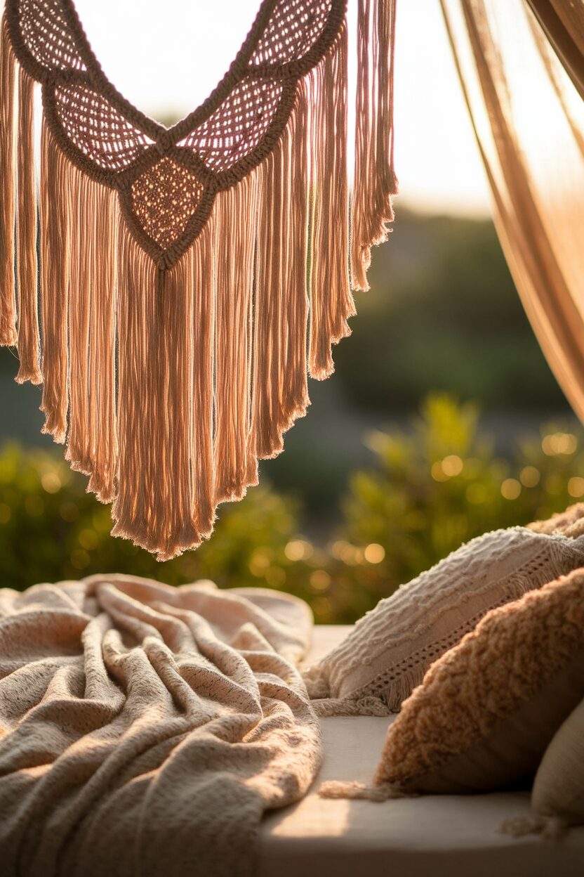 This boho staple is perfect for adding softness to your space. It can be a focal point above the bed or a subtle accent in a reading nook. Plus, they’re easy to make yourself if you’re feeling crafty!