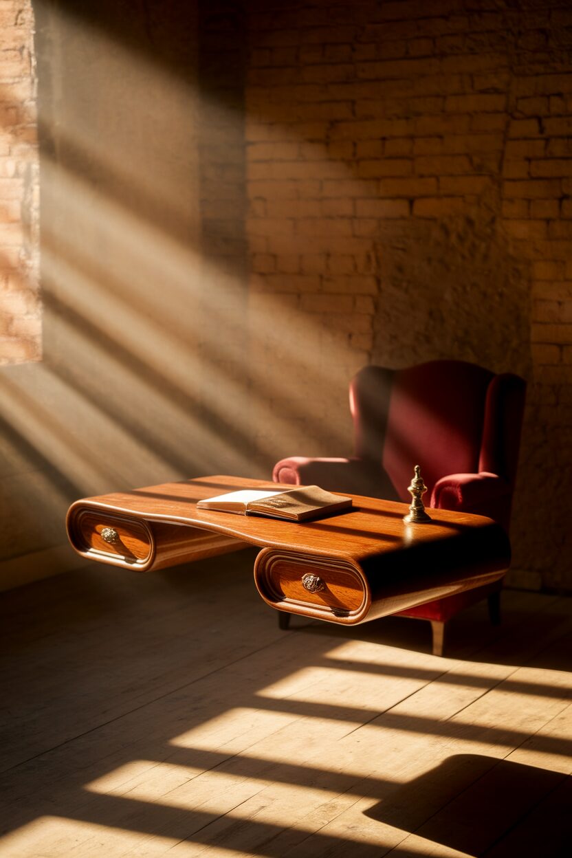 A floating desk is a cool choice for small spaces. It doesn’t take up floor space and looks super modern.