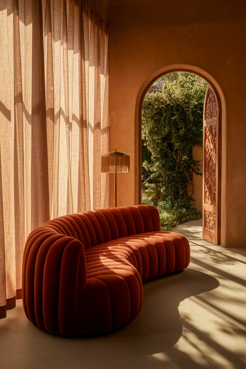 The charm of curved furniture lies in its ability to embrace us with soft lines and inviting forms. It brings a sense of fluidity and motion that can break the monotony of straight lines. There’s something magical about the way these pieces transform spaces into comforting retreats.