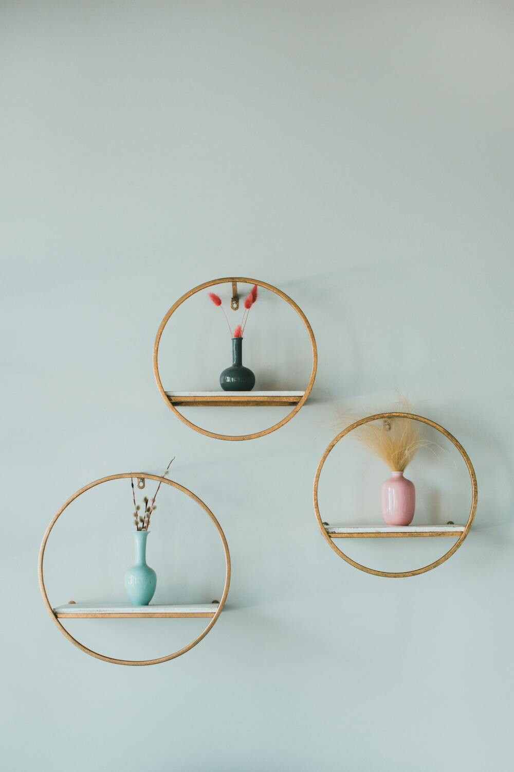 Transform a bare wall into a minimalist art gallery with sleek, white floating shelves. Display a curated selection of art pieces, leaving enough space around each to breathe. The simplicity highlights each artwork’s beauty.