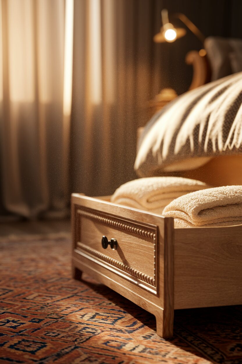 Imagine a bed that not only provides a good night’s sleep but also holds your out-of-season clothes. Under-bed drawers are a fantastic way to make use of space that usually goes unnoticed. They slide out smoothly, giving you easy access to items you don’t need every day.