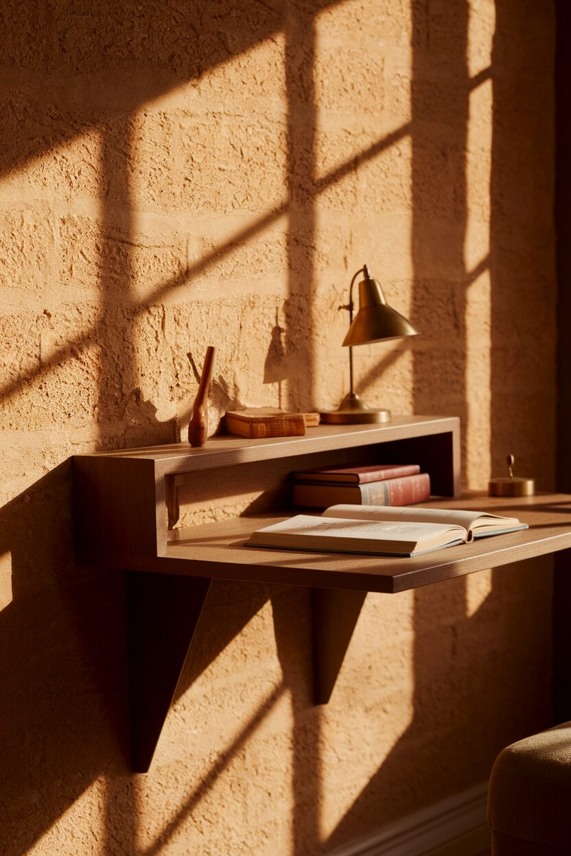 If you need an office but lack space, a floating shelf desk is your new best friend. It mounts to the wall, providing a desk surface without the bulk of a traditional desk. When you finish working, simply close the desk, and it becomes a sleek shelf.