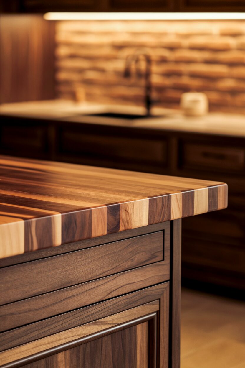 The wooden texture adds a rustic feel that pairs well with modern and traditional kitchens alike. Plus, it’s a cost-effective option compared to stone. Keep it oiled and it will last for years.