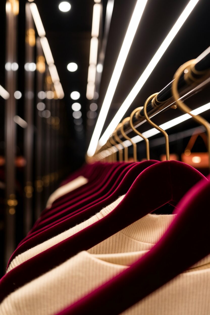 Velvet hangers are a chic addition to any closet. They feel soft to the touch and keep clothes from slipping. Plus, their uniformity brings a neat look.