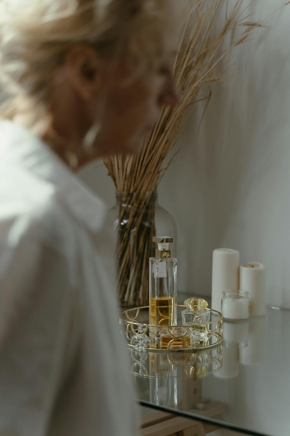 Use a decorative tray or mirrored surface to hold the bottles. Your closet will smell as good as it looks.