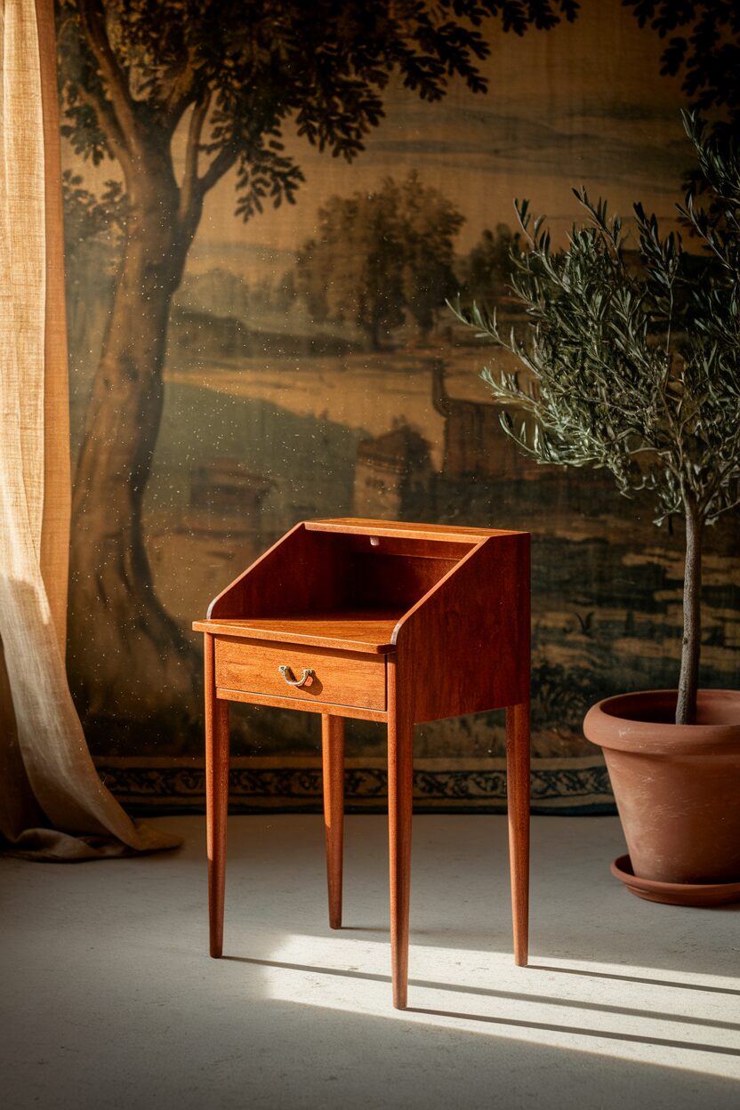 A compact wooden writing desk is perfect for any creative corner. Imagine a small, inviting space where ideas flow freely. This desk is both functional and beautiful, with clean lines and a cozy feel.