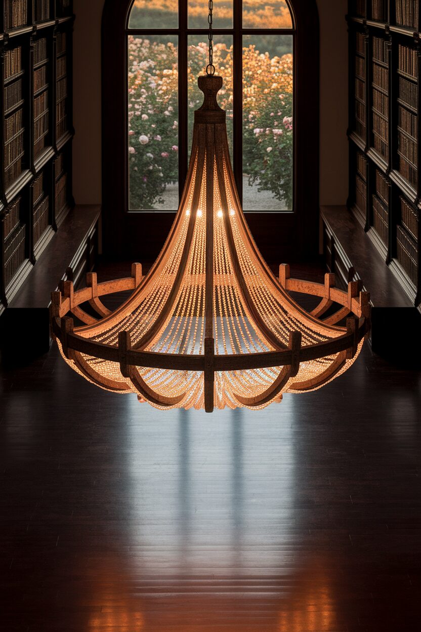For an eco-friendly touch, a bamboo chandelier is a perfect choice. It’s natural and airy, bringing a bit of the outdoors inside.