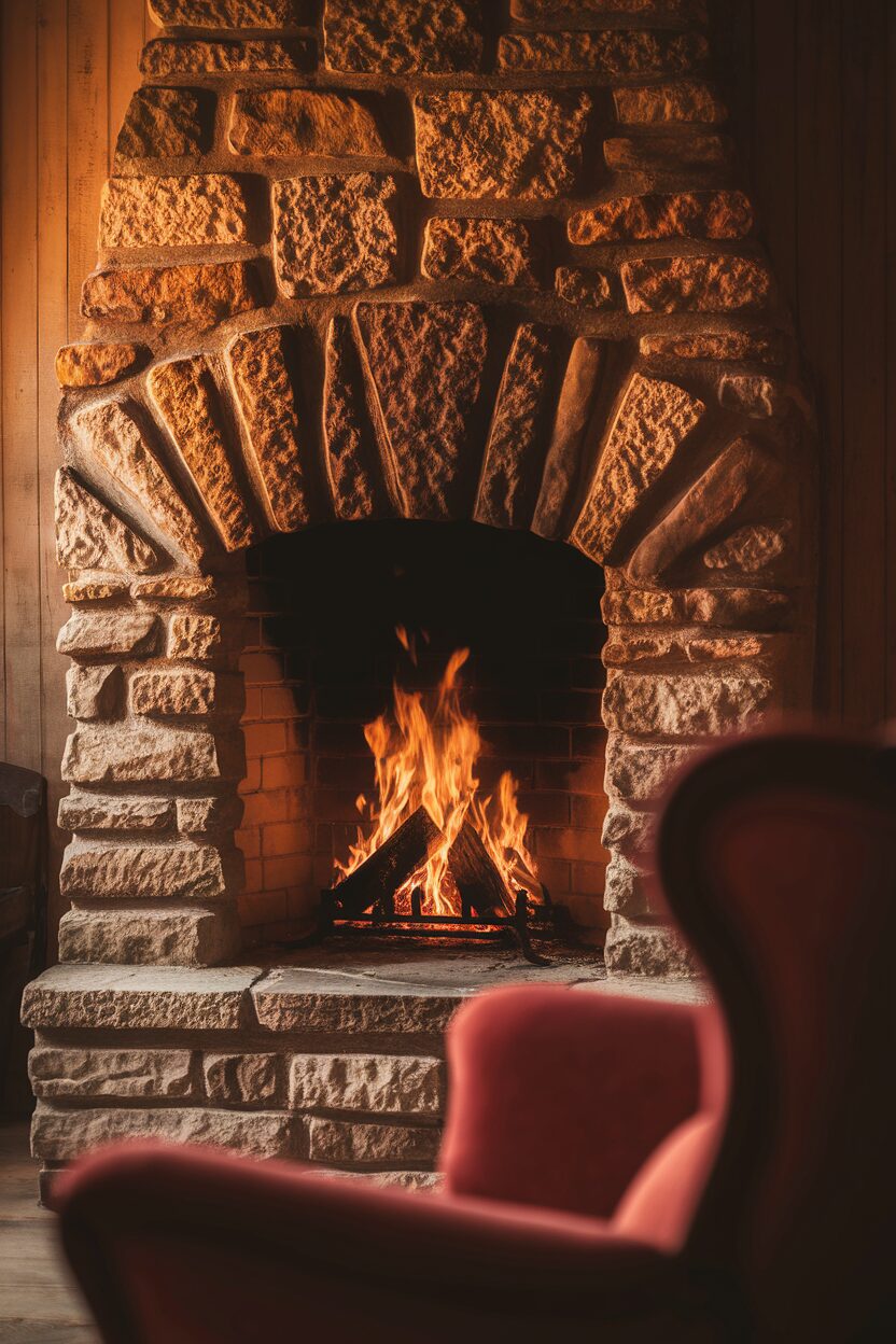 Imagine a fireplace with rugged stones stacked in a charming, uneven manner. This design brings the outdoors in, creating a warm, cozy atmosphere that whispers tales of mountain cabins. The earthy tones of the stones blend effortlessly with wooden beams.
