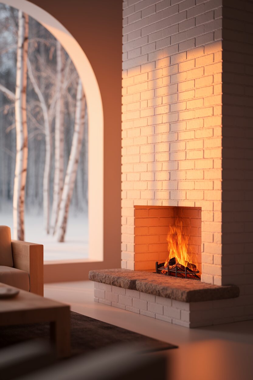 A brick fireplace evokes a sense of nostalgia and timeless appeal. The red or white bricks create a cozy, welcoming ambiance. It’s a classic choice that pairs well with almost any decor style.