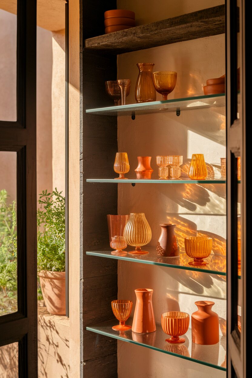 Ceramic shelves are unique because they’re both functional and decorative. They’re perfect for a Mediterranean or eclectic style.