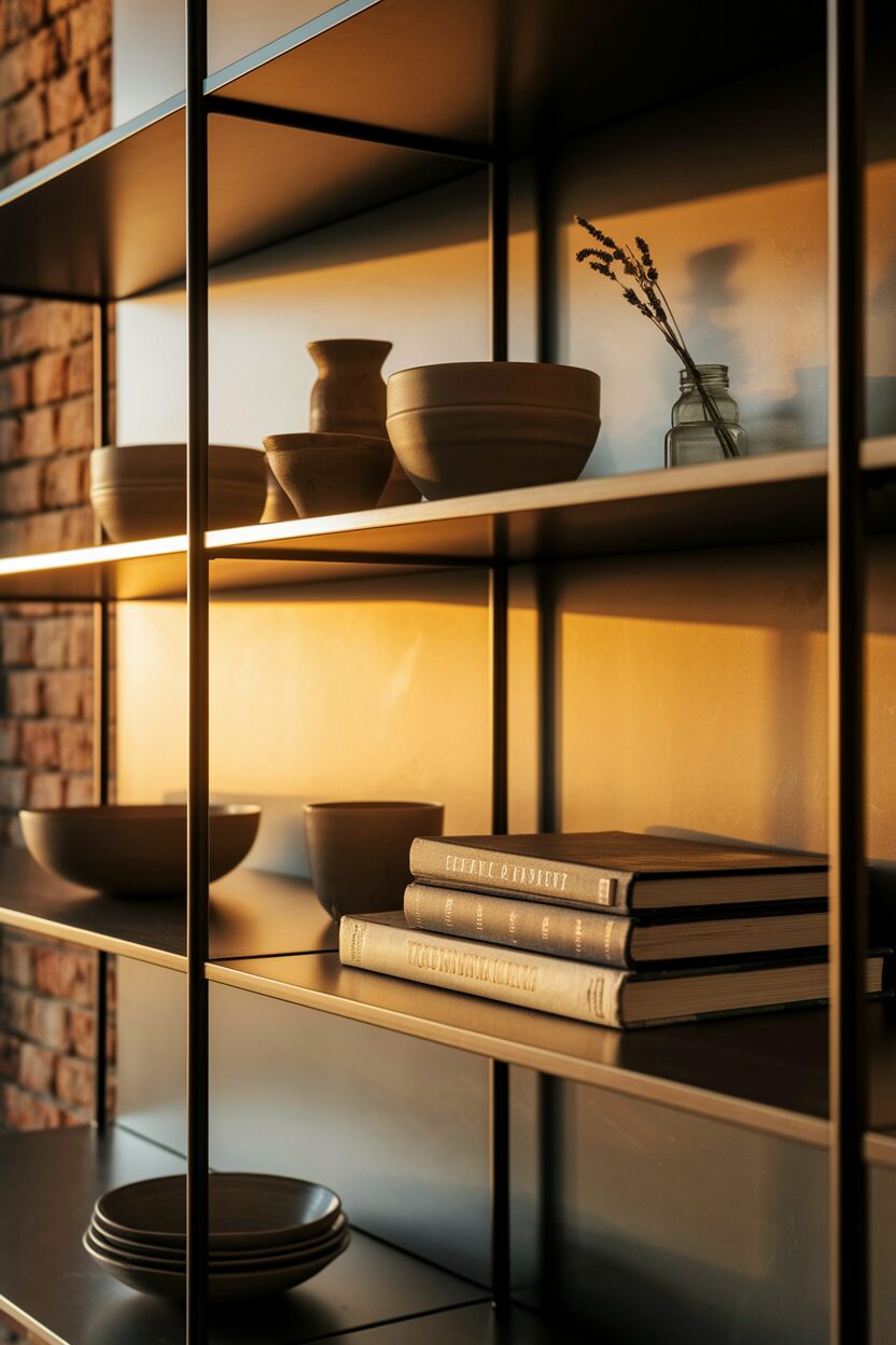 2. Sleek Metal Shelves