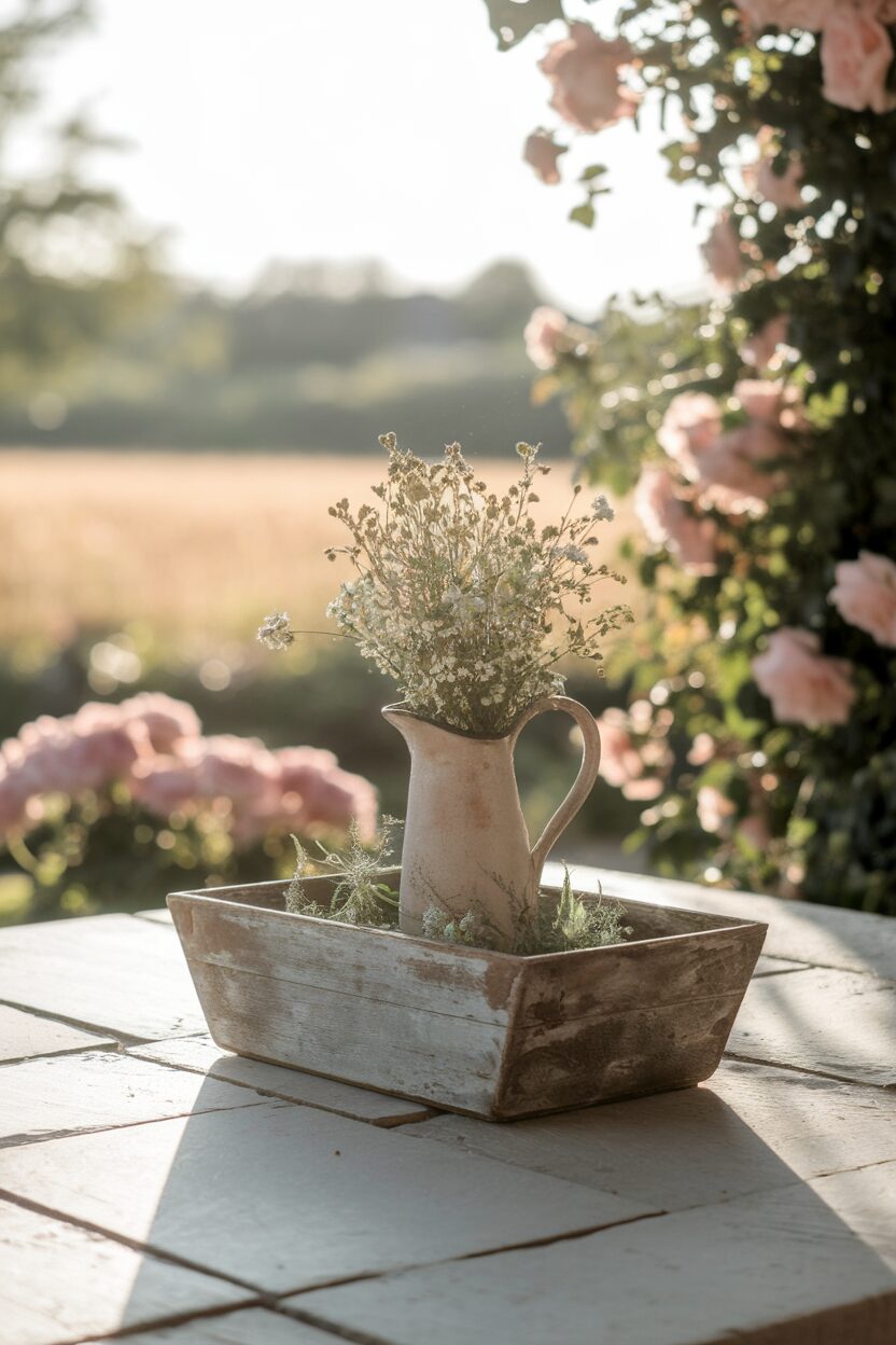 This setup is a lovely way to showcase family heirlooms or flea market finds. It’s a charming, budget-friendly option that brings a touch of history to your outdoor space.