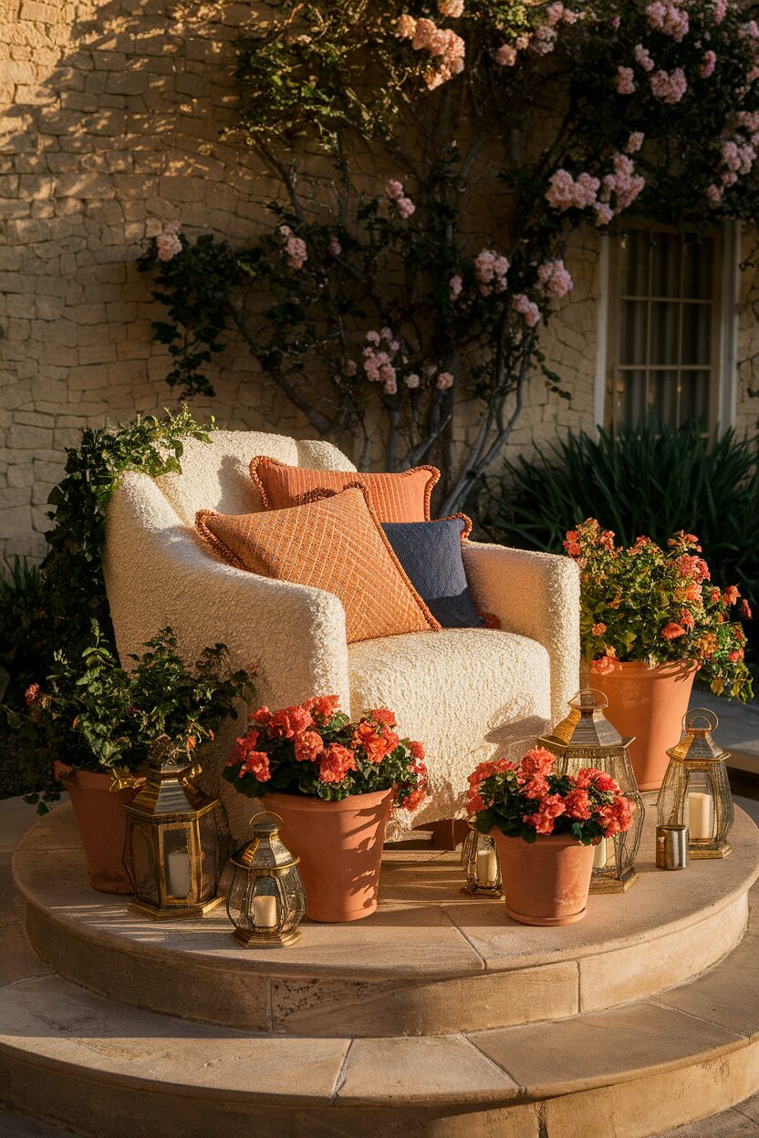 To make it even more special, add a small water feature like a fountain or a birdbath to invite a bit of nature into your space. This setting not only looks beautiful but also promotes relaxation and tranquility.