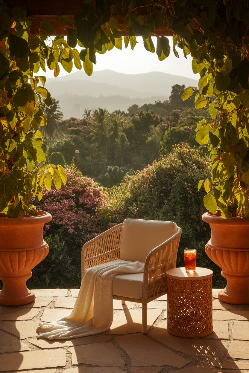 This elegant and sophisticated setup is perfect for enjoying a morning coffee or an evening glass of wine. It’s versatile and can be easily tailored to fit any budget.