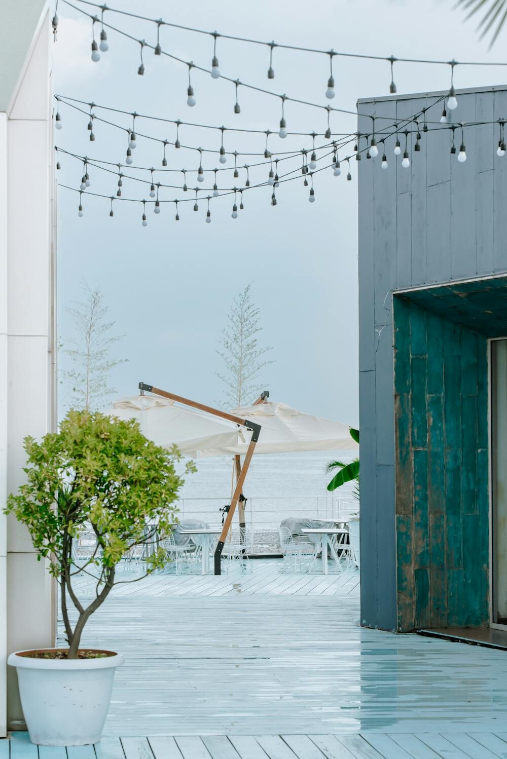 Channel a maritime vibe with a nautical-themed patio. Use navy blues, crisp whites, and marine-inspired decorations.