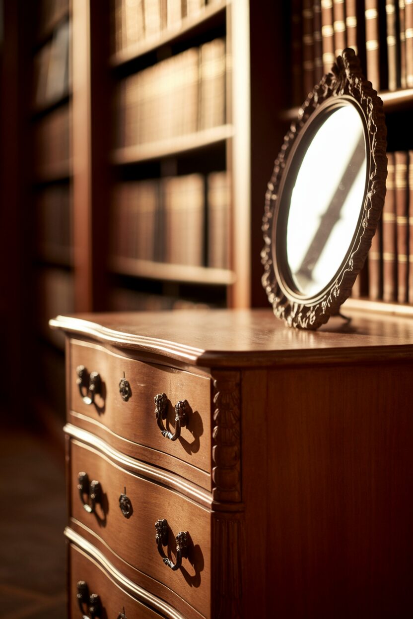 The intricate details of antique frames complement a vintage dresser beautifully. They’re like mini works of art on their own.