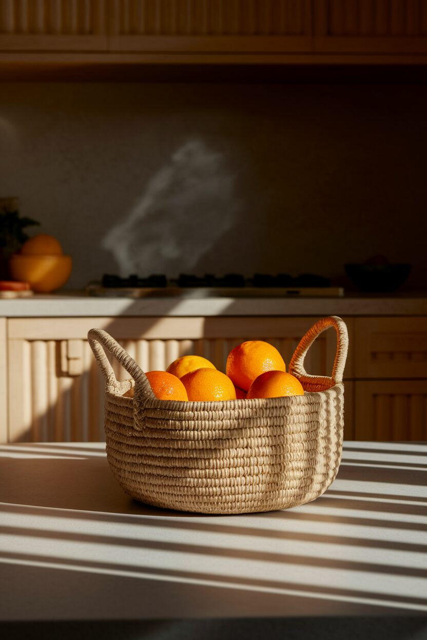 Imagine a clutter-free kitchen counter where everything you need is within arm’s reach. Woven baskets can hold fruits, utensils, or kitchen towels, giving your kitchen a neat and tidy look.