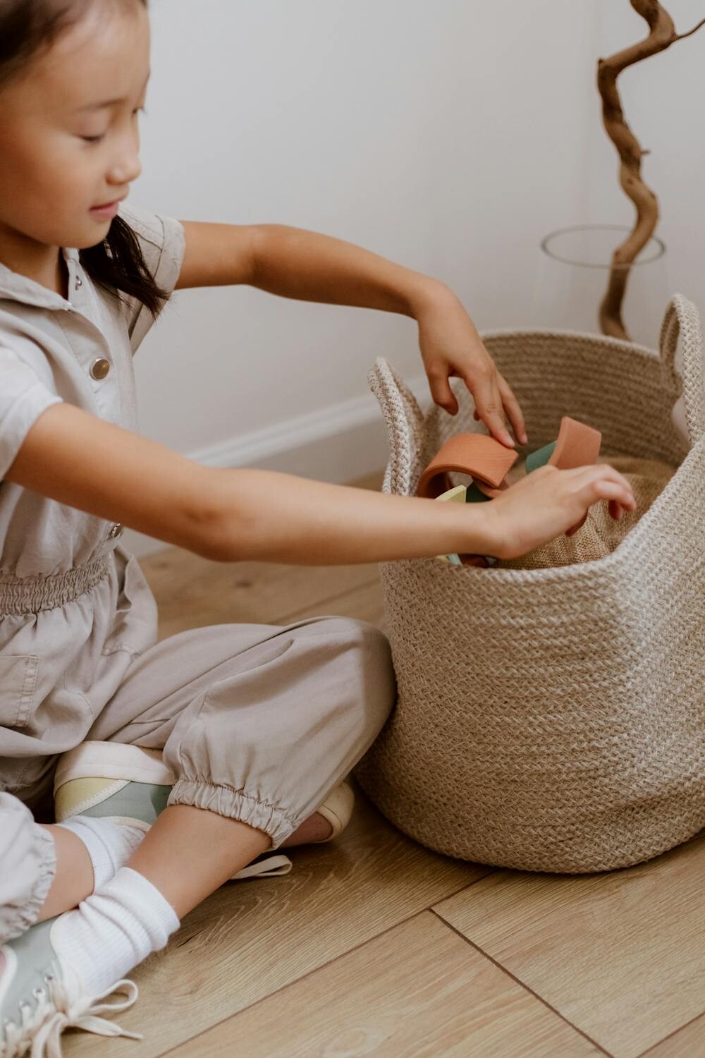 Make cleanup fun and easy with woven baskets in your child’s playroom. They’re perfect for storing toys, books, and games while adding a playful touch.