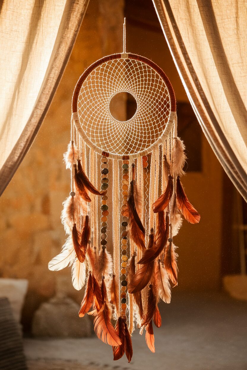 The Bohemian Dreamcatcher is not just a wall hanging; it’s a whimsical portal into a world of dreams. With its intricate weaves and flowing tassels, it captures the carefree spirit of boho style. Imagine it swaying gently in the breeze, casting playful shadows on your wall.