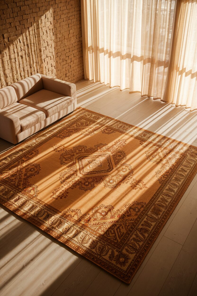 Choose patterns and colors that complement your furniture or walls. If you have neutral furniture, a bold rug can add a fun splash of color. If your furniture is colorful, a more neutral rug can balance the look.