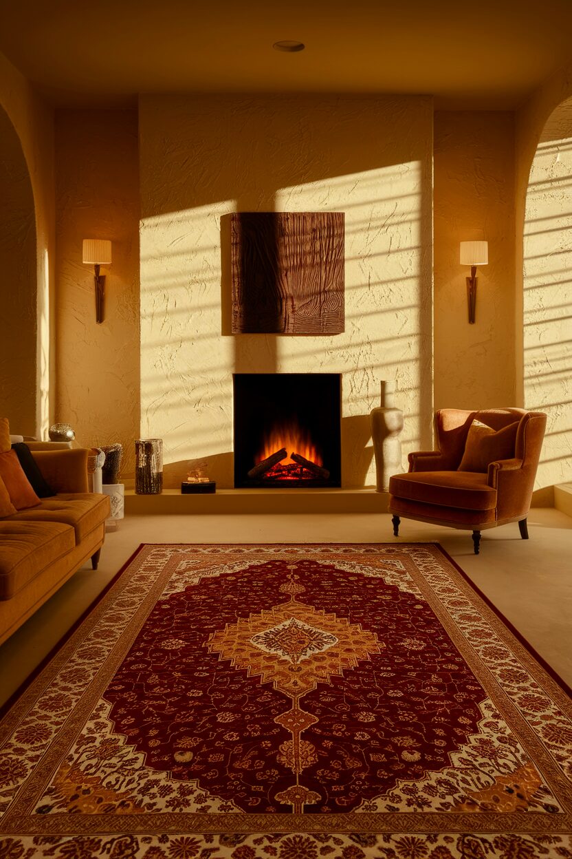 Placing a soft rug in front of the fireplace can define the area beautifully. It adds warmth and texture.