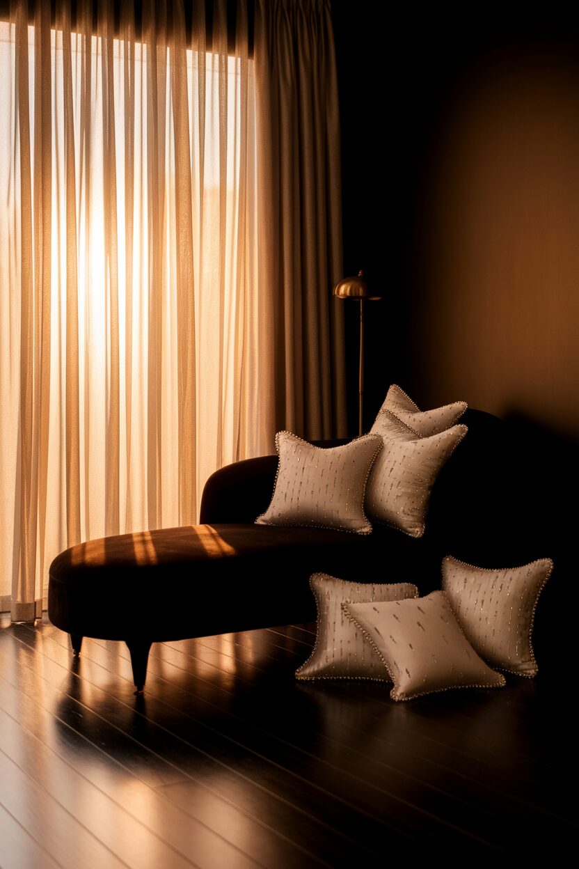 Metallic accents like gold, silver, or copper can bring a touch of glamour to your black room. These shiny elements reflect light and add a bit of sparkle that contrasts beautifully with the dark backdrop.