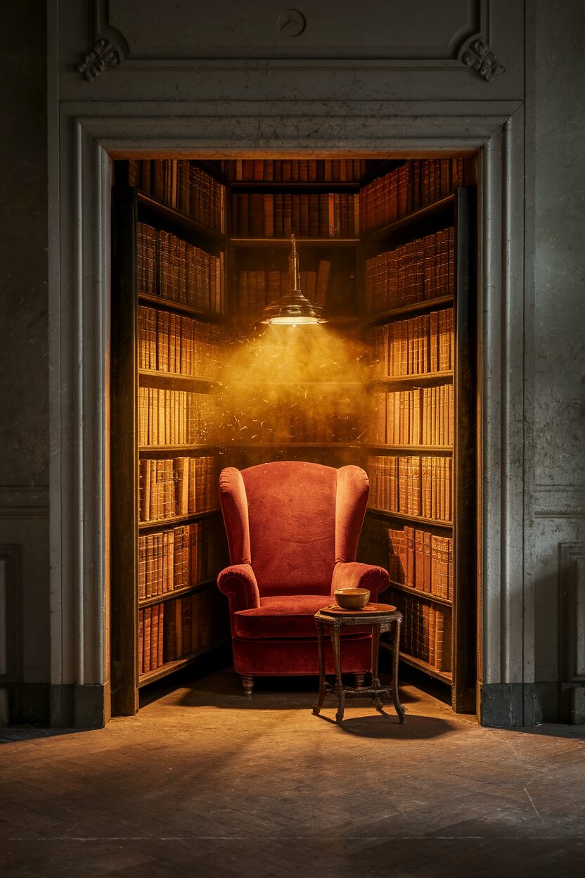 Hunt for old books and unique shelves. It’s a timeless and intellectual space to enjoy.