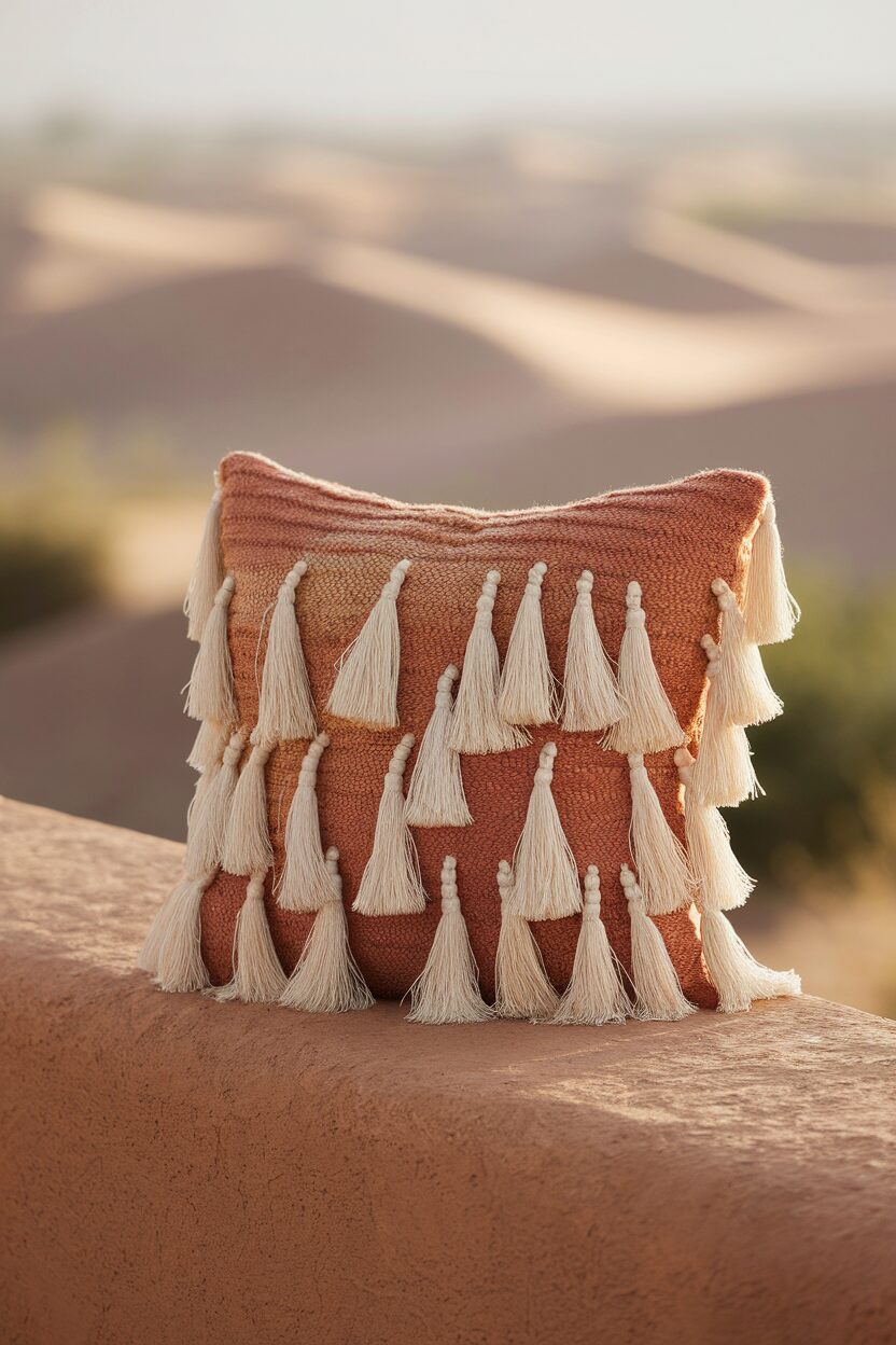 This cushion brings the warm hues of the desert right into your home. With earthy tones and soft tassels, it whispers stories of endless sands and sunset vistas.