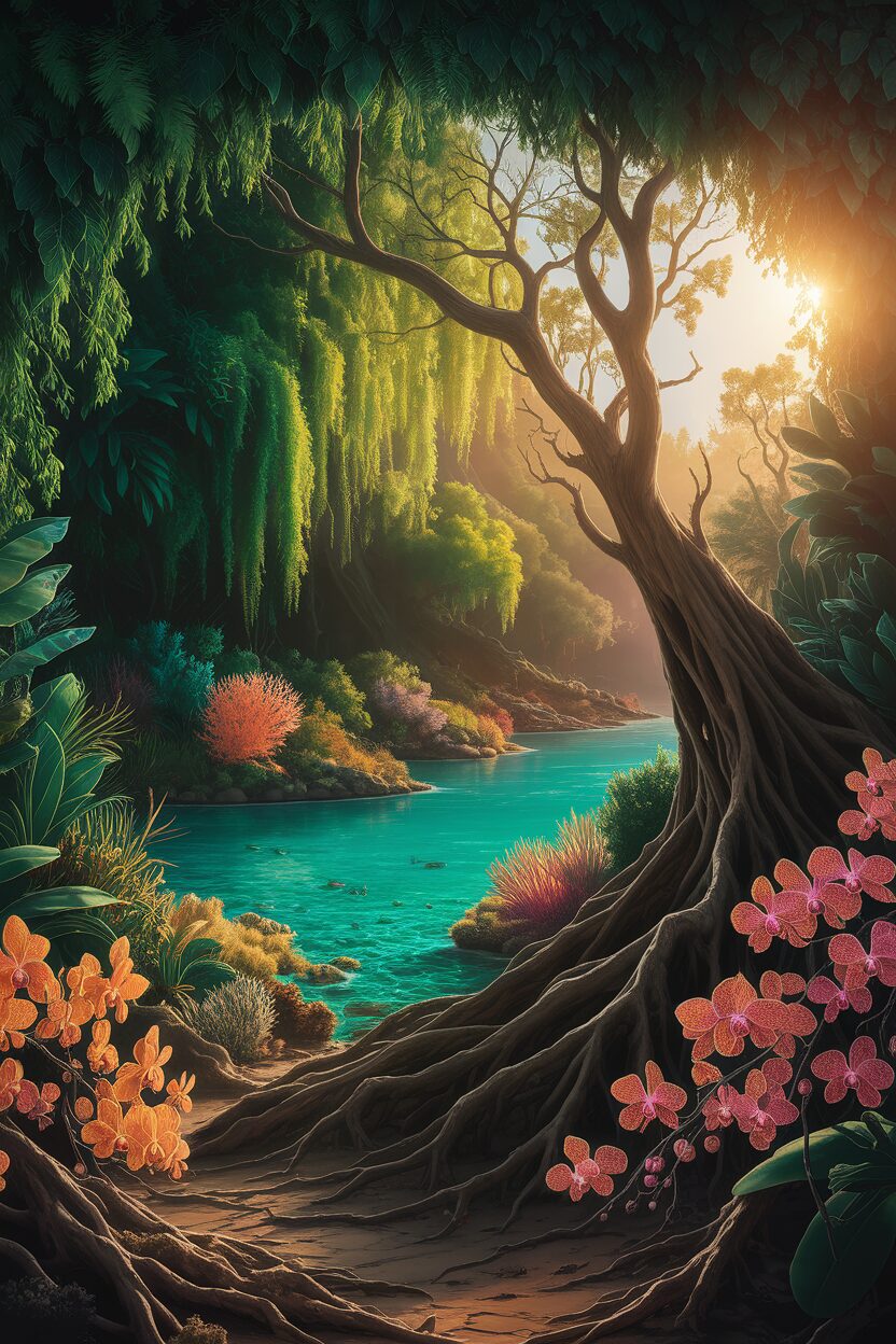 Step into a lush, magical forest without leaving your home. Imagine towering trees, hidden creatures, and dappled sunlight filtering through leaves. It’s like having a secret garden on your wall.