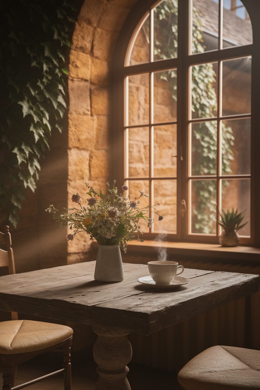 This style is all about charm and character, making every morning feel like a step back in time. Personalize it with vintage finds or family heirlooms.