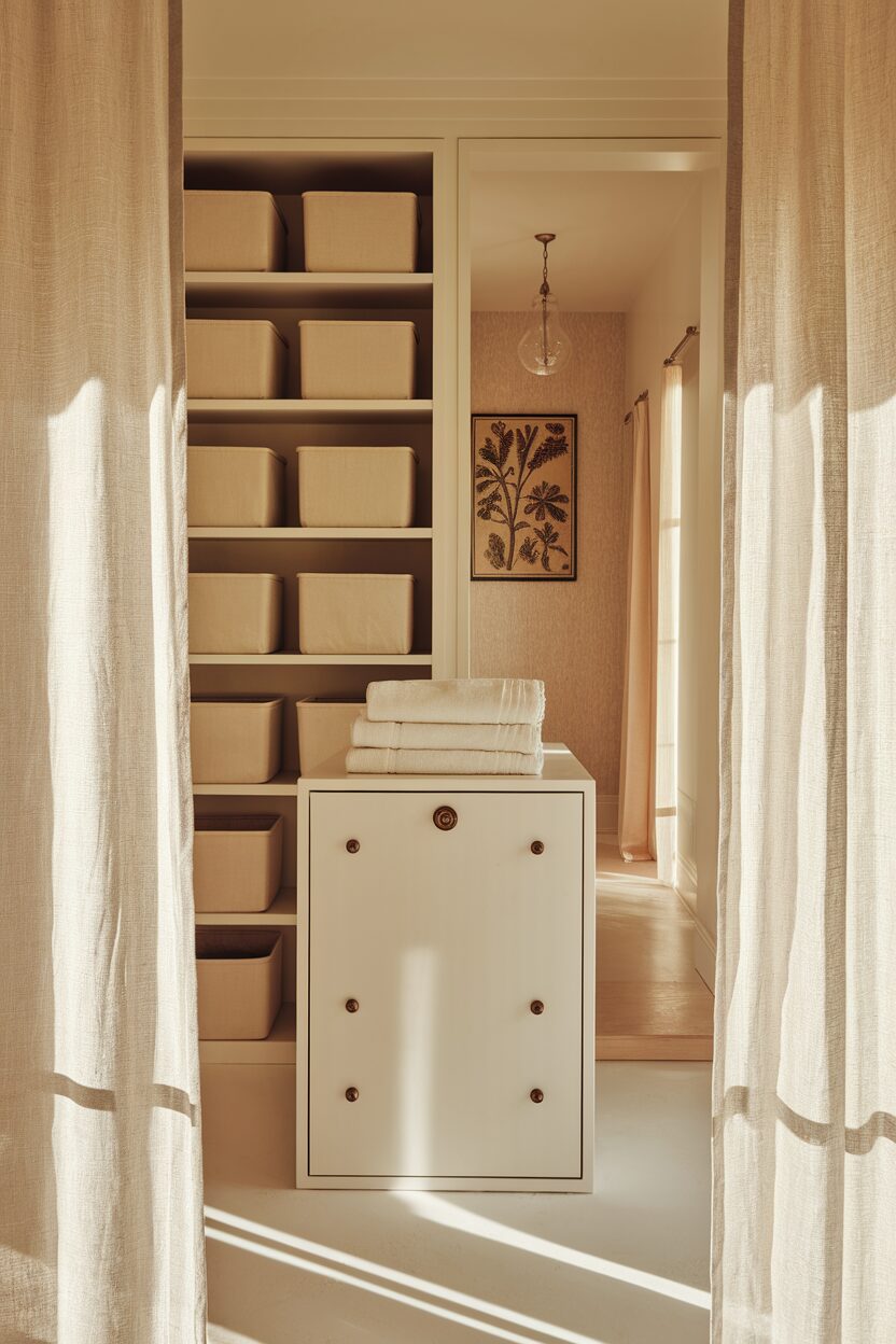 For those who love simplicity, a minimalist laundry closet is a dream. Clean lines and a monochrome palette create a peaceful atmosphere. Hide clutter in sleek cabinets with push-to-open doors.