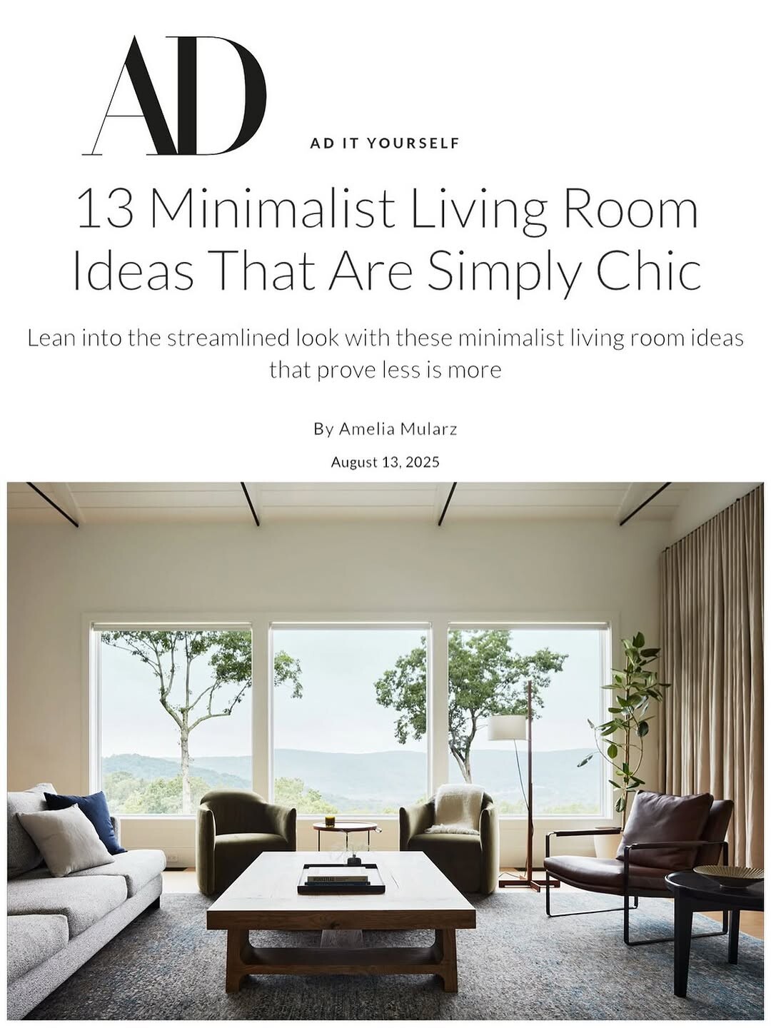 "AD IT YOURSELF" stands out with a clean header showcasing "13 Minimalist Living Room Ideas That Are Simply Chic." A stylish design captures attention. Elegant typography enhances readability. Minimalism shines through. It focuses on simplicity and sophistication.