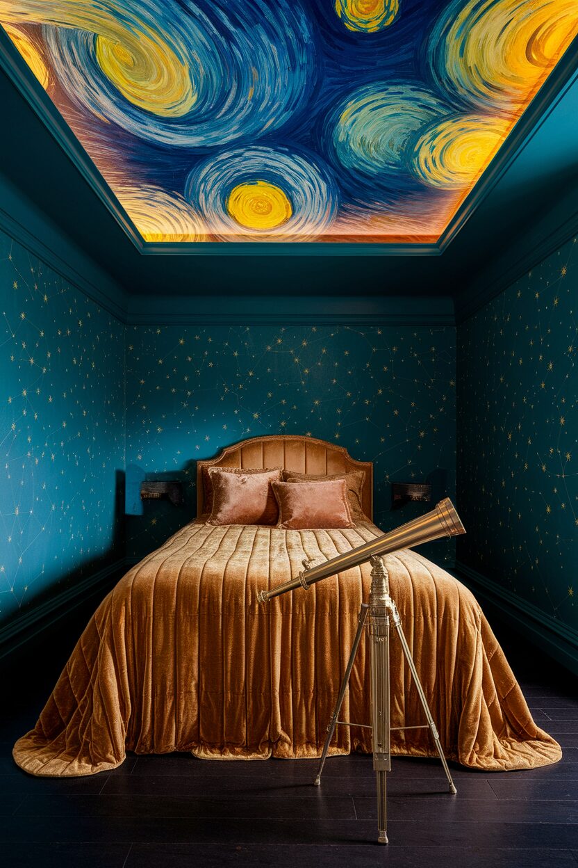 Transform your ceiling into a starry night sky, just like the magical nights in Coraline’s world. Use glow-in-the-dark paint or small LED lights to create twinkling stars. This creates a cozy, dreamy atmosphere perfect for a bedroom or reading nook.