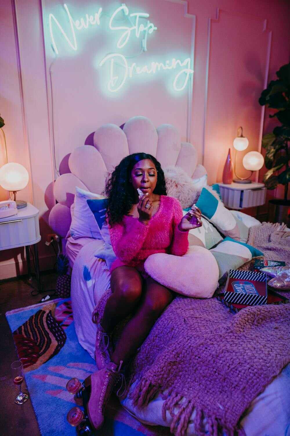 Light scented candles to fill your room with delightful aromas. Scents like lavender or vanilla can be calming and comforting.