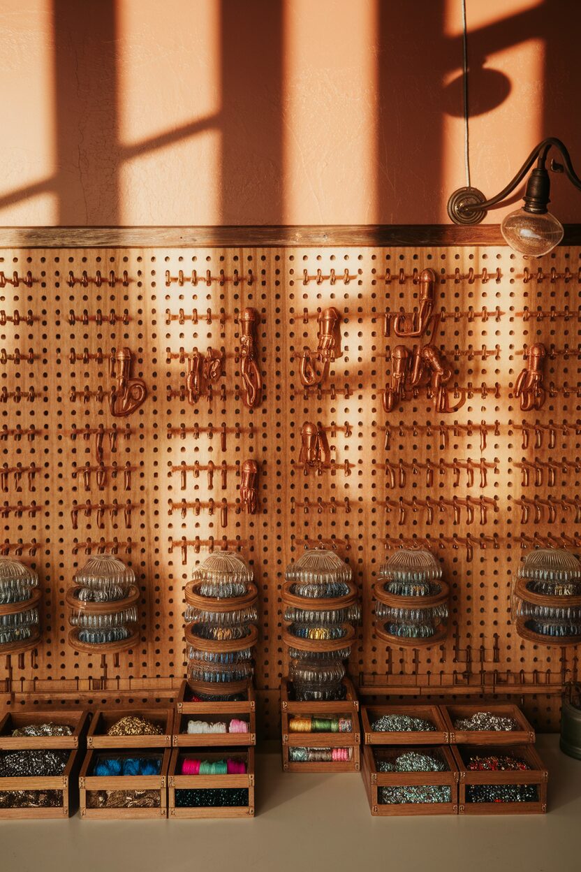 This idea is unique because it’s so customizable. You can change the layout whenever you want, making it perfect for evolving needs and trends in crafting. Pegboards are inexpensive, yet they offer endless possibilities!