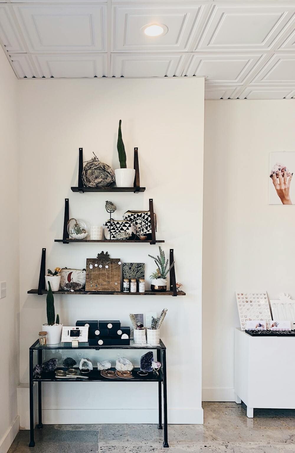 Floating shelves are like magic on the walls. They hold your craft supplies, display your favorite items, and keep everything within reach. Plus, they look super stylish!