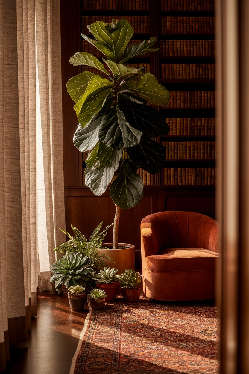 Bring the outside in with a selection of indoor plants. They not only purify the air but also add a lively touch to your den. Choose low-maintenance options if you’re new to plant care.