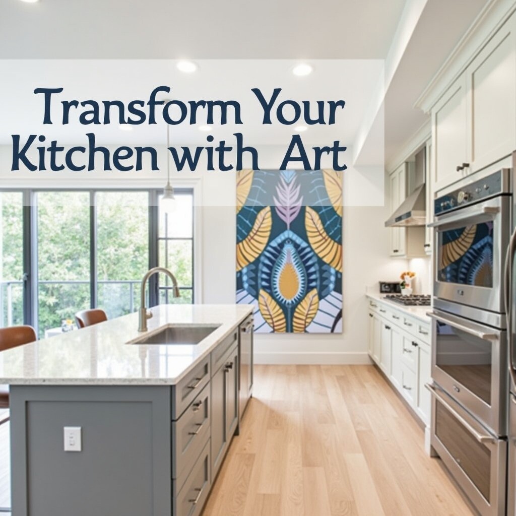 Vibrant artwork on the wall sparks interest. Bold colors and intricate patterns draw the eye. Art brings personality to the space. It transforms a kitchen from mere utility to a social hub. Natural light pours in through large windows. This enhances mood and showcases materials beautifully.