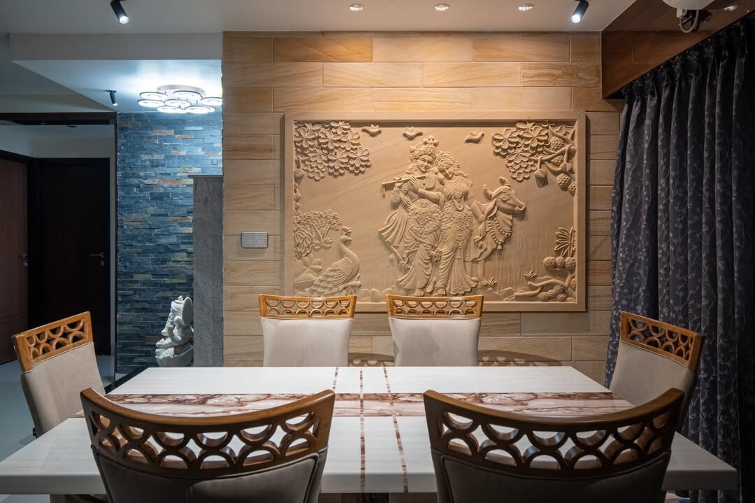 Cultural influences shine through the relief. It connects past with present. Overall, this dining area illustrates how design choices impact atmosphere and experience. Spaces like these encourage togetherness and enjoyment, vital for any home.