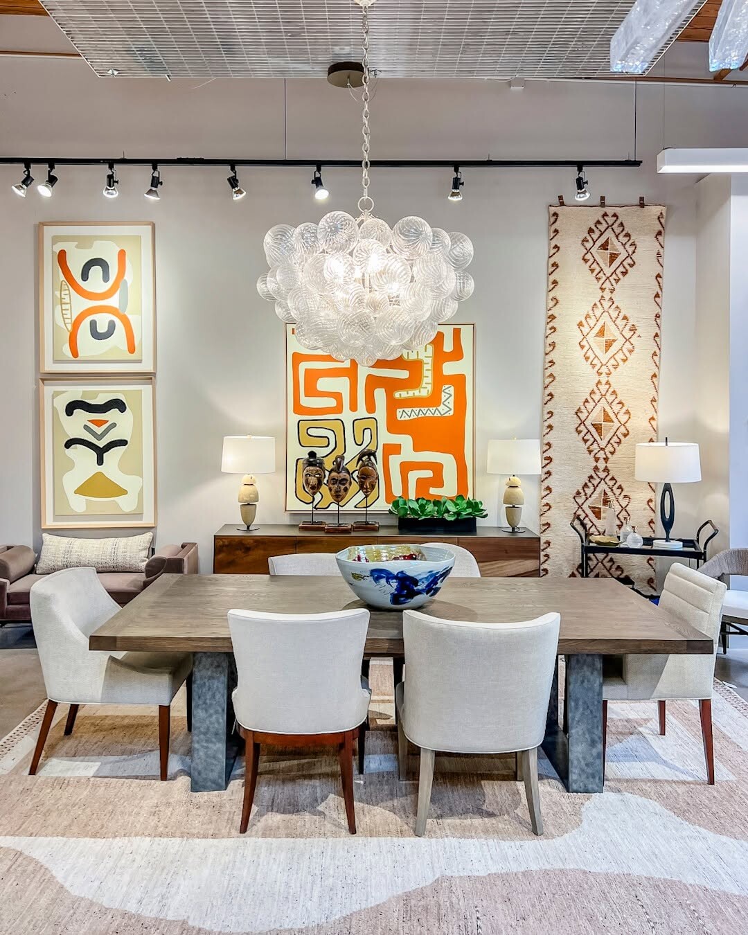 Modern Dining Oasis with Colorful Art
