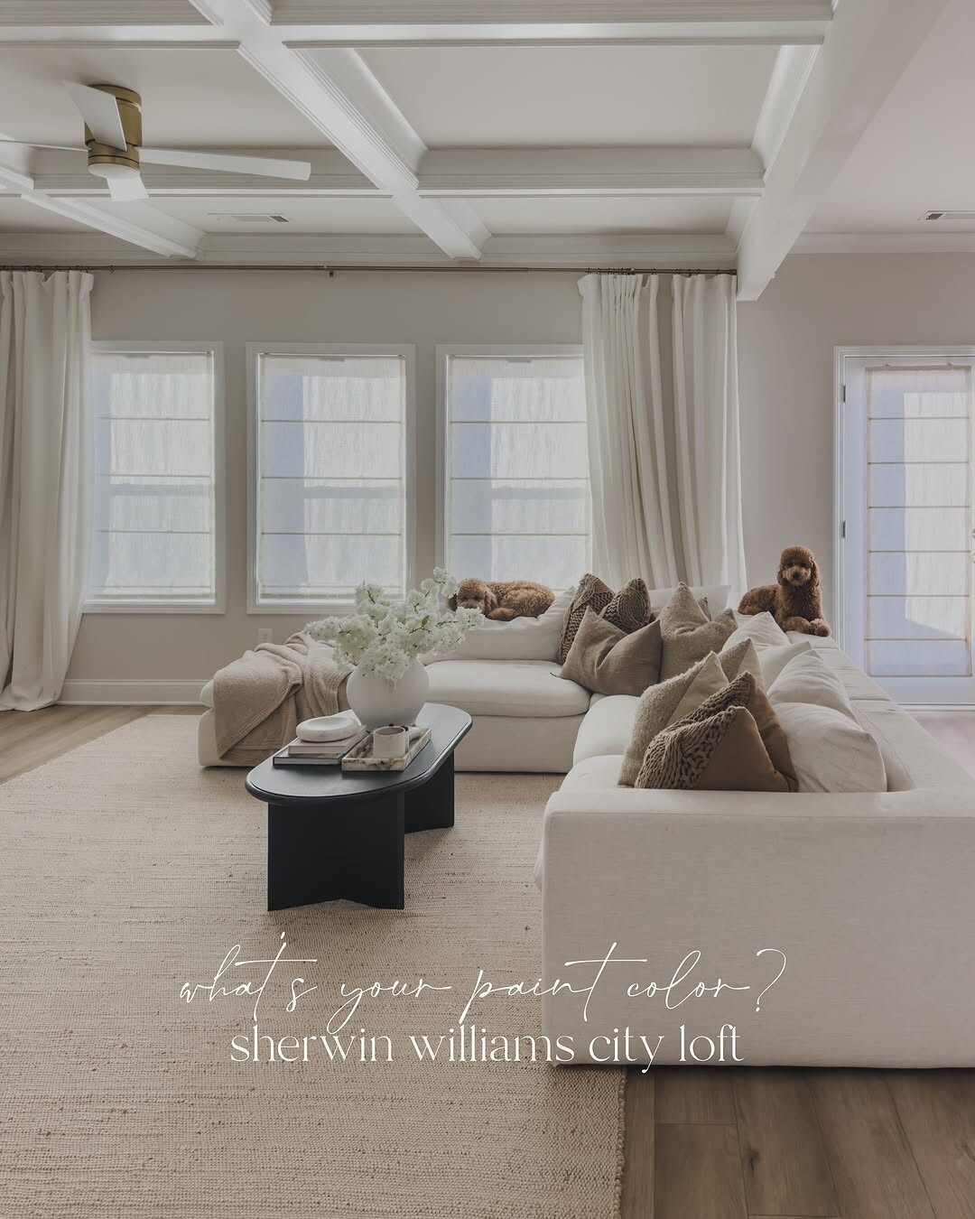 Sherwin Williams' "City Loft" paint color enhances this serene setting. It suggests modern elegance. Neutral tones allow for easy blending with various decor styles. In design, color choice matters. It influences mood and perception. This room showcases how thoughtful elements work in harmony. A perfect example of a contemporary living space.
